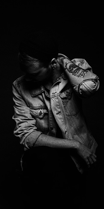 Two ghostly white figures in coveralls and helmets are softly dancing.